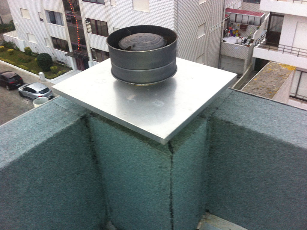Reabilitação de cobertura, com remoção das telhas existentes de fibrocimento que continham amianto e aplicação de telhas em naturocimento. Aplicação de rufos, sapatas, chapins e gueiros novos em zinco puro. Impermeabilização das platibandas e das chaminés com telas minerais.